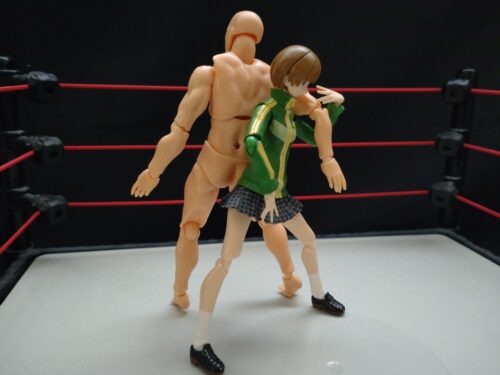 背中合わせの相手の腕の下から自分の腕を入れて相手の腕を押さえる
