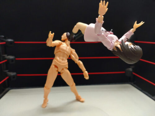 タッグマッチの時はドロップサルトで攻撃して倒れている相手の上に着地して一人で二人を攻撃することができる技です。一人でドロップキックとムーンサルトで攻撃するような感じです。