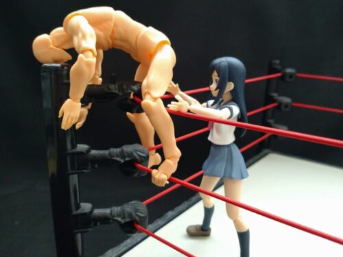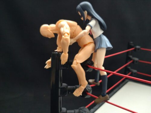 リング内に背を向けた状態でコーナーにいる相手に